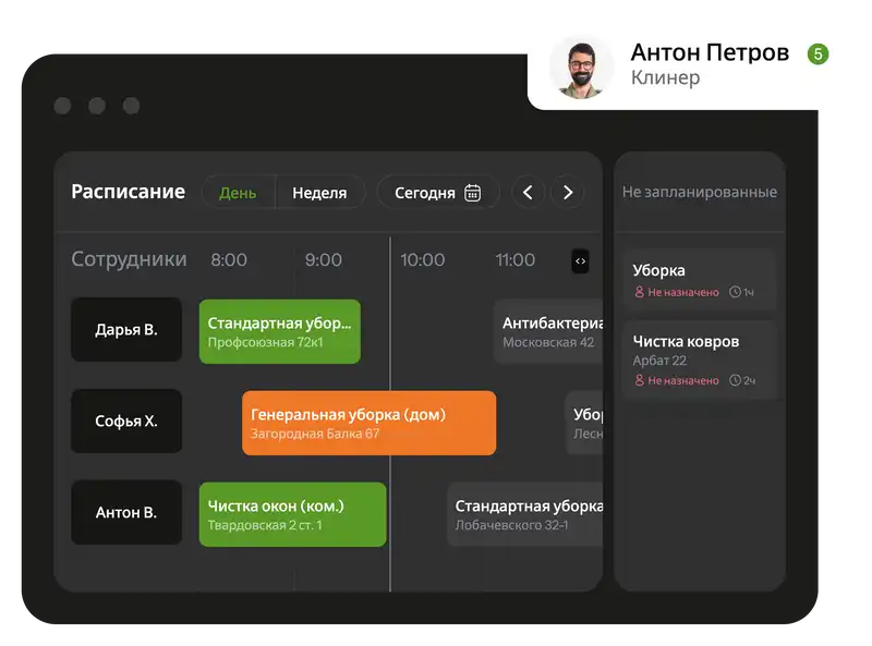 Планадо подходит для любых сфер с выездным персоналом: клининг, сантехника, электрика, окна и двери, HVAC, ритейл и мерчендайзинг, дезинсекция и дератизация, ремонт и строительство, сервисные службы и др.