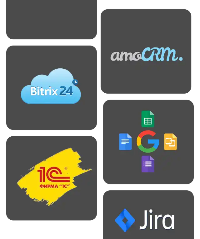 Планадо поддерживает интеграцию с amoCRM, Bitrix24, 1С и любыми другими системами вашей инфраструктуры через API, что позволяет автоматизировать обмен данными о клиентах, заявках и статусах работ