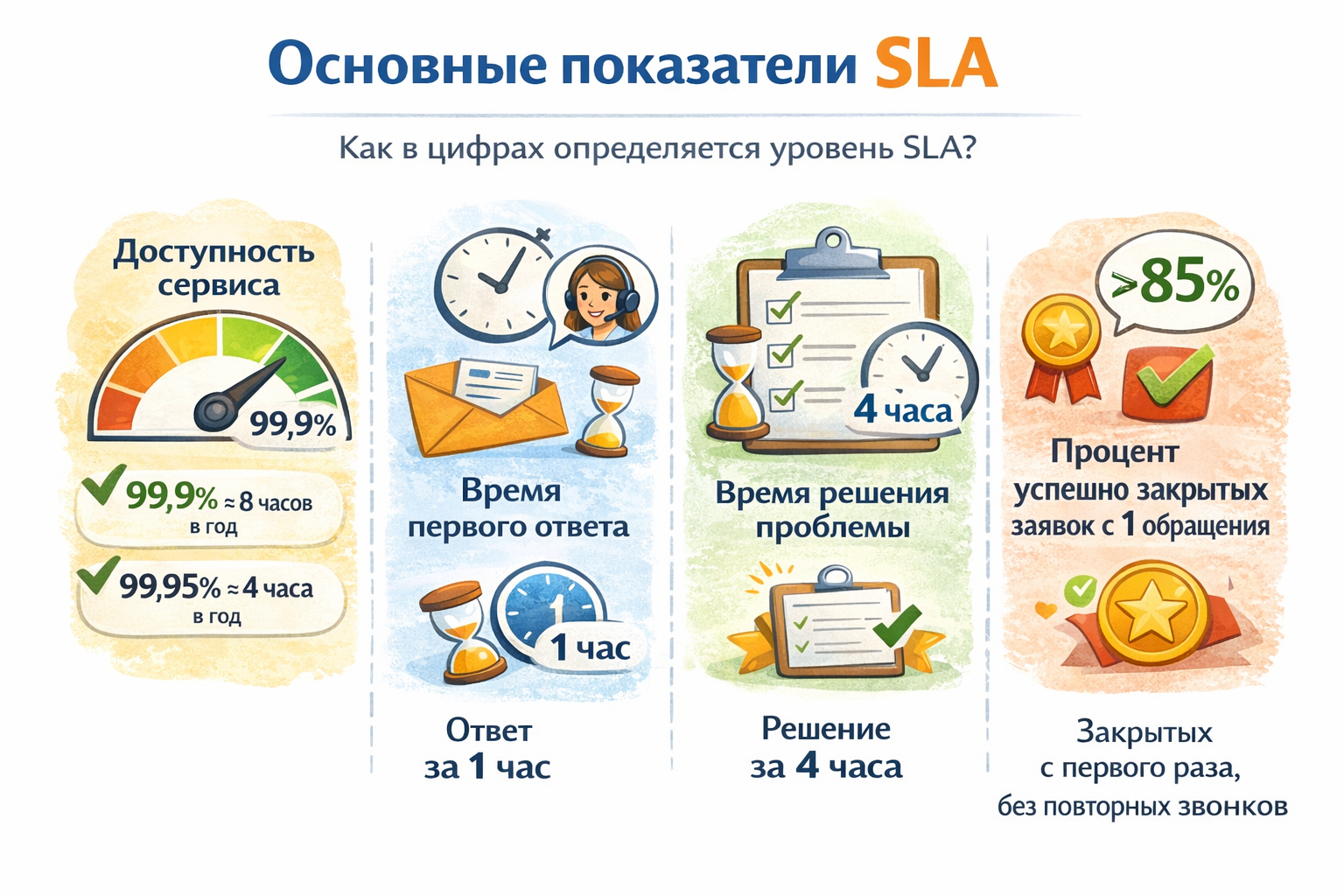 Важно: SLA — не просто формальность, это рабочий инструмент. Он дисциплинирует команду и делает сервис предсказуемым для клиентов.