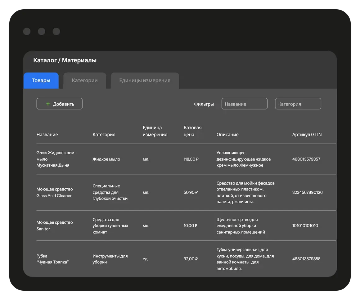 Учитывайте оказанные услуги, проданные товары и использованные материалы. После завершения наряда они автоматически подсчитываются, передаются в офис. Контролируйте расход материалов и остатки на складе.