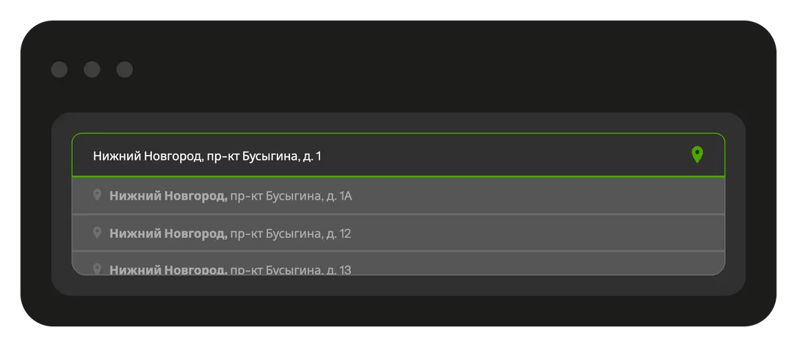 Начните вводить адрес — Планадо автоматически проверит его и предложит полное правильное написание. Вы исключите разное написание одного и того же адреса. При подборе адреса Планадо сразу запоминает его GPS-координаты.