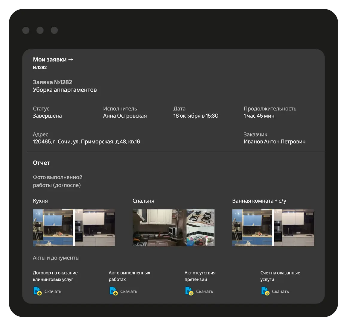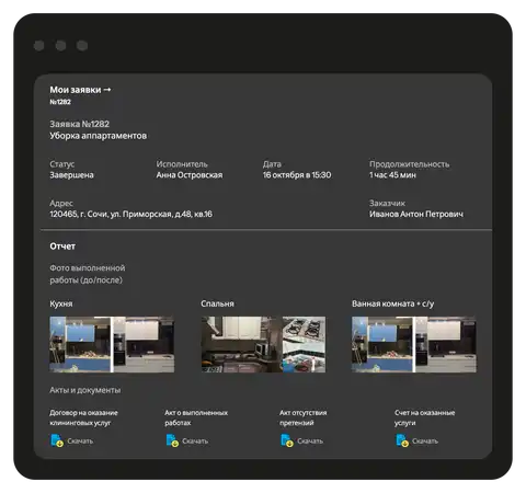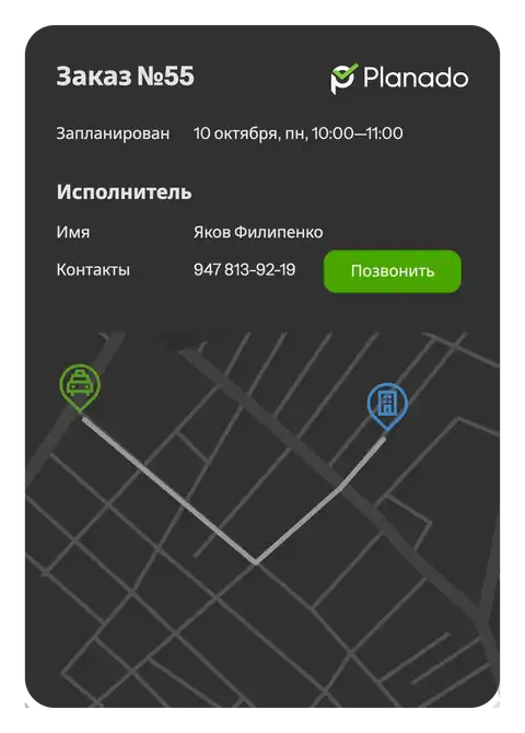 Клиенты могут в реальном времени отслеживать маршрут работника на карте с любого устройства и видеть предполагаемое время его прибытия.