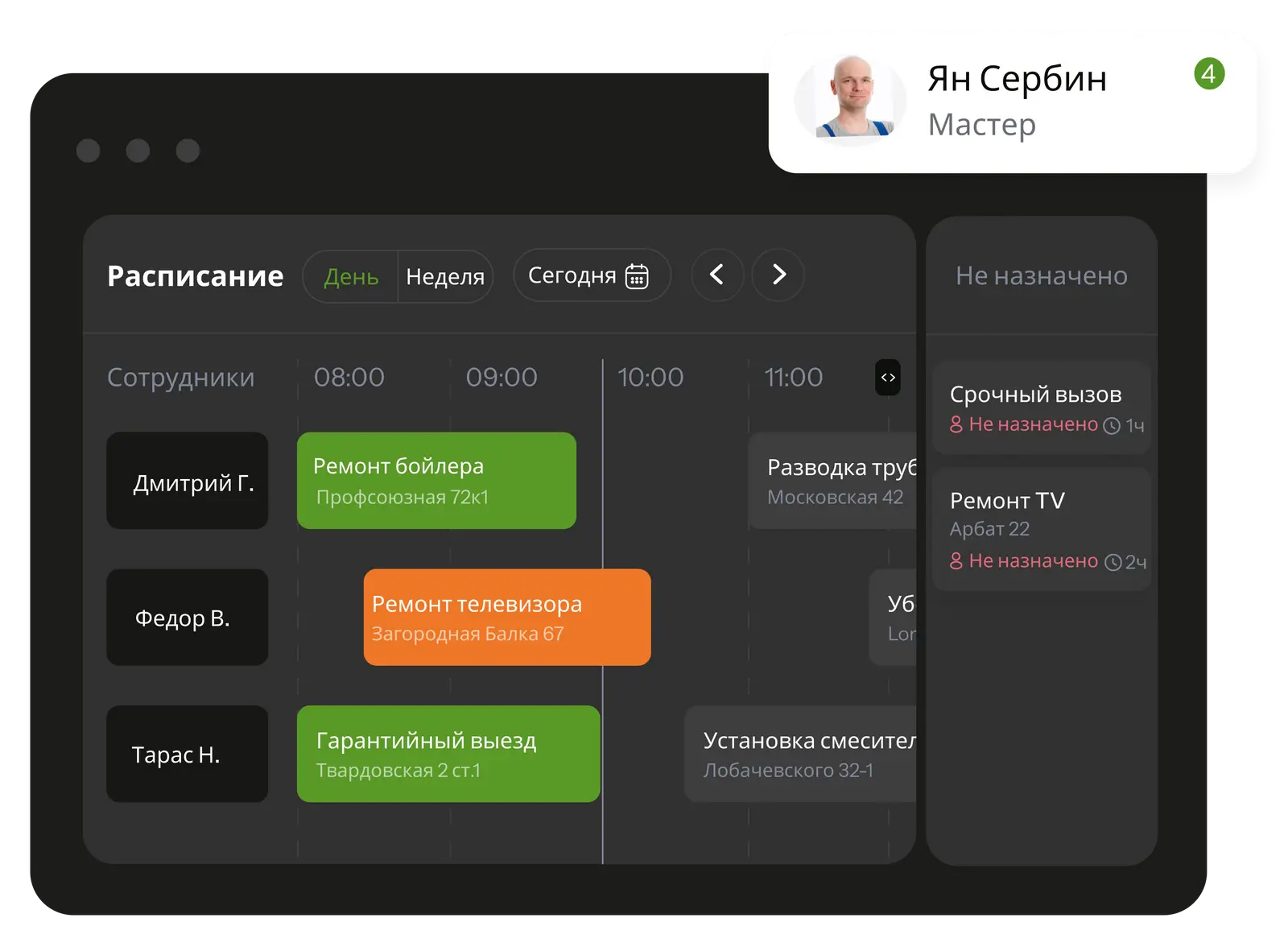 В отличие от многих программ для сервисного центра или ремонтной мастерской, Планадо фокусируется на выездном обслуживании: GPS-трекинг, мобильное приложение для мастеров, автоматическое распределение заявок. Мастера фиксируют состояние устройства до и после ремонта, а система автоматически формирует акты и хранит архив документов по каждому заказу. Бесплатная пробная версия на 14 дней позволяет оценить все возможности системы без ограничений.