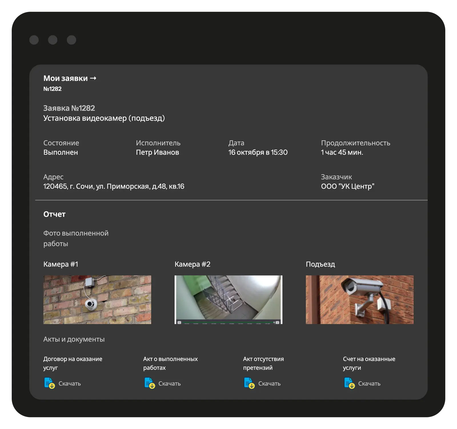 Предоставьте клиенту доступ к брендированной странице с полной информацией о заявках на установку и обслуживание, этапах работ, фотоотчётами и технической документацией. Через клиентский портал ваши клиенты могут отслеживать статус своих заявок, просматривать завершённые и запланированные работы, а также оставлять отзывы о качестве сервиса. Вы самостоятельно определяете, какие заявки, объекты и детали будут доступны клиенту для просмотра.