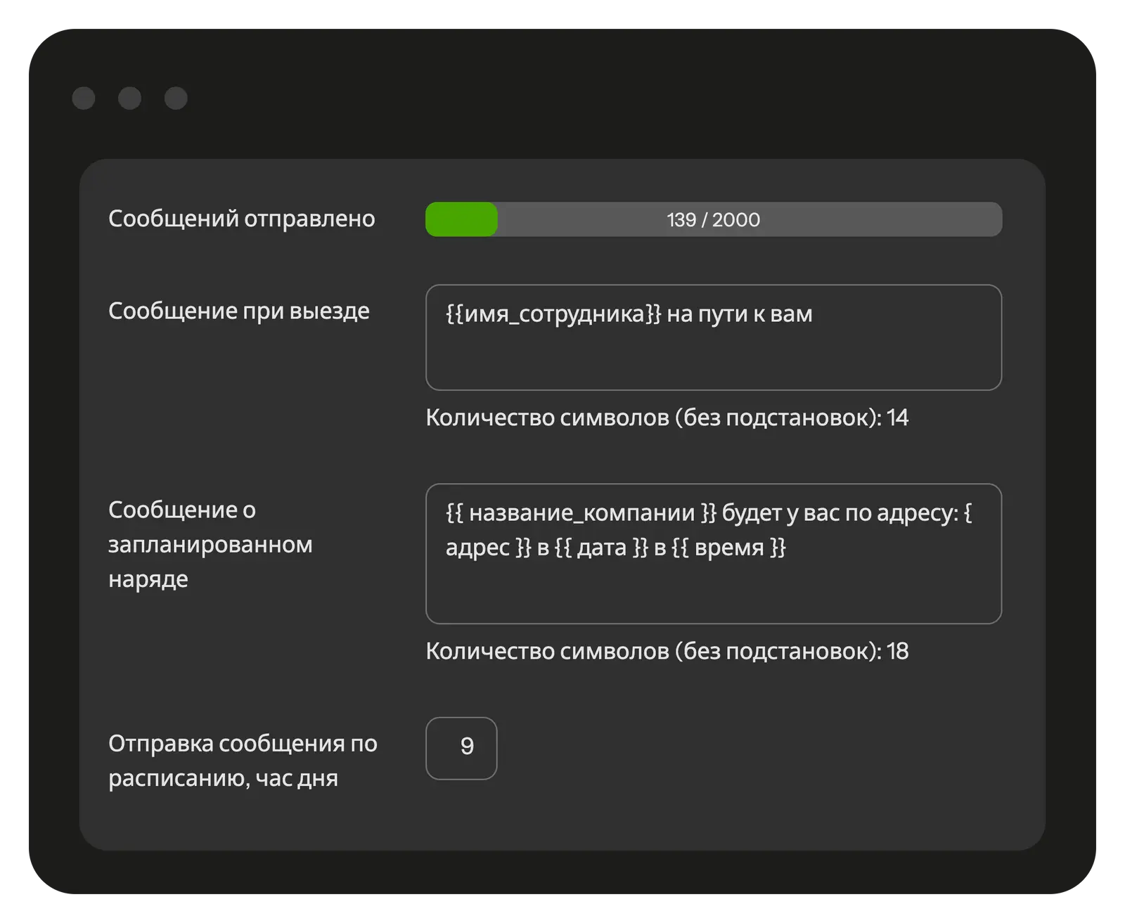 Отправляйте клиентам SMS о статусе заявки, времени прибытия мастера и завершении работ.
