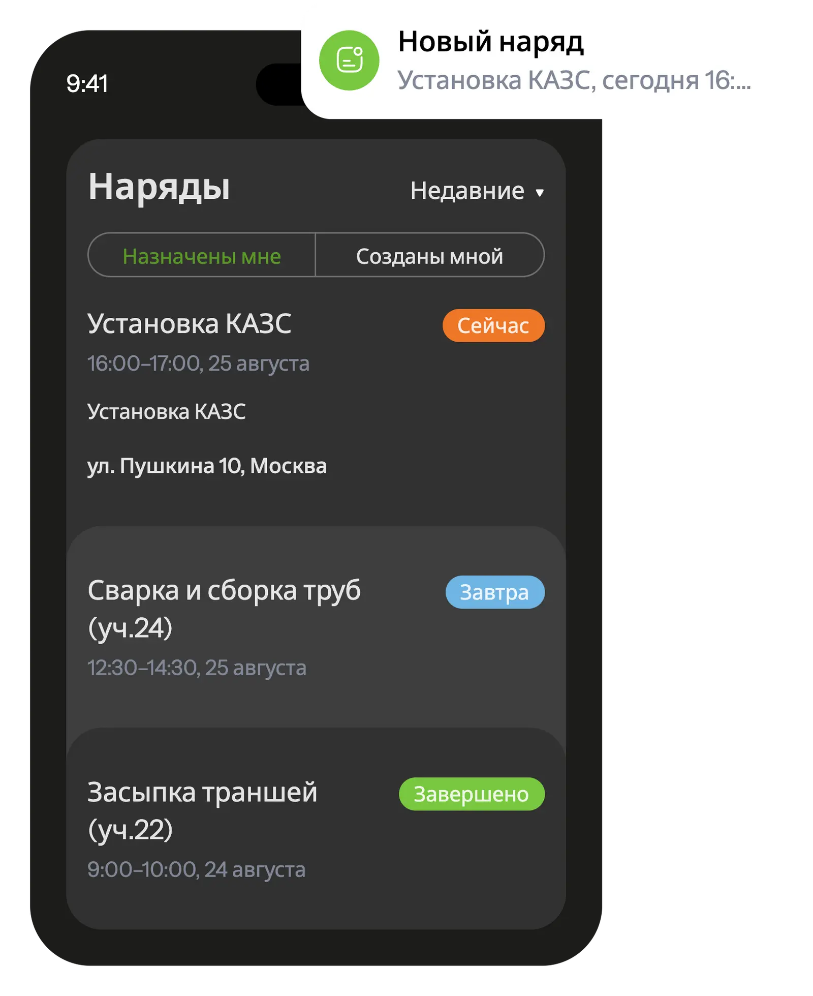 В мобильном приложении специалисты и инженеры просматривать все запланированные работы и получать уведомления о новых задачах.