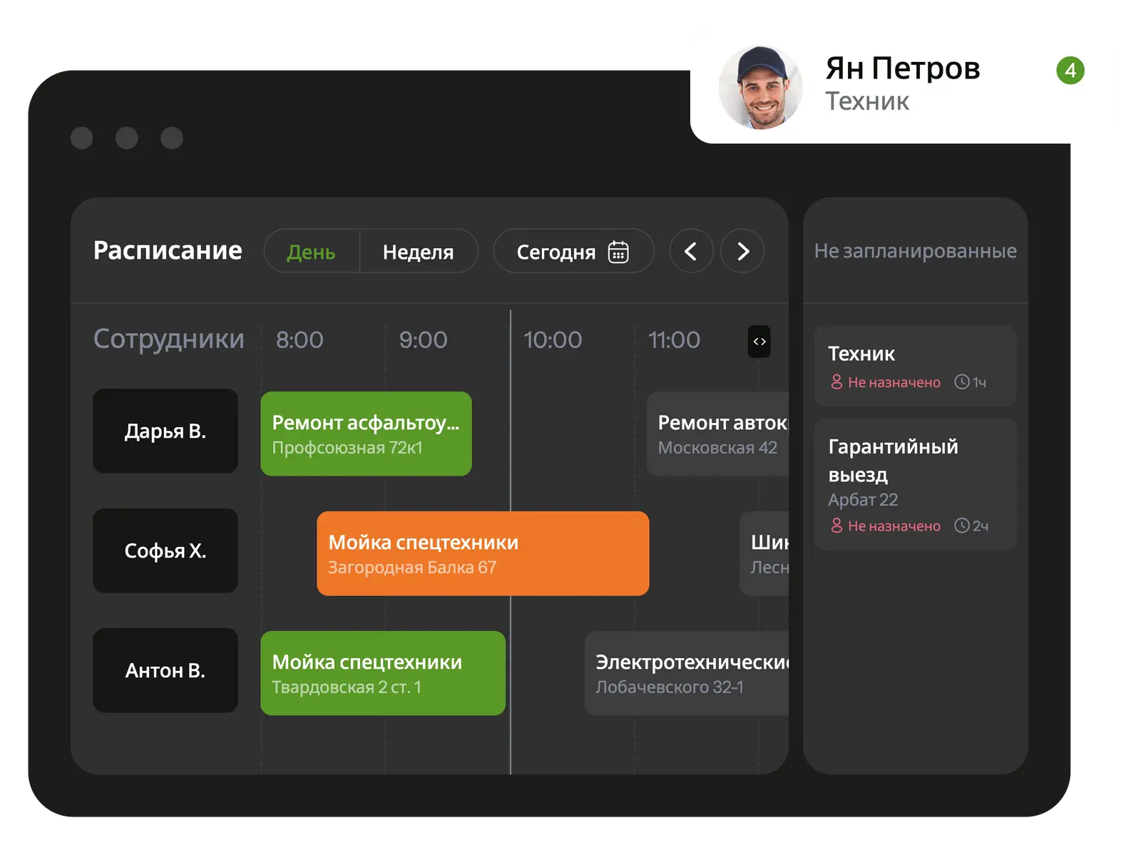 Специалисты получают все запланированные поручения и изменения через мобильное приложение, а также уведомления о новых заданиях.
