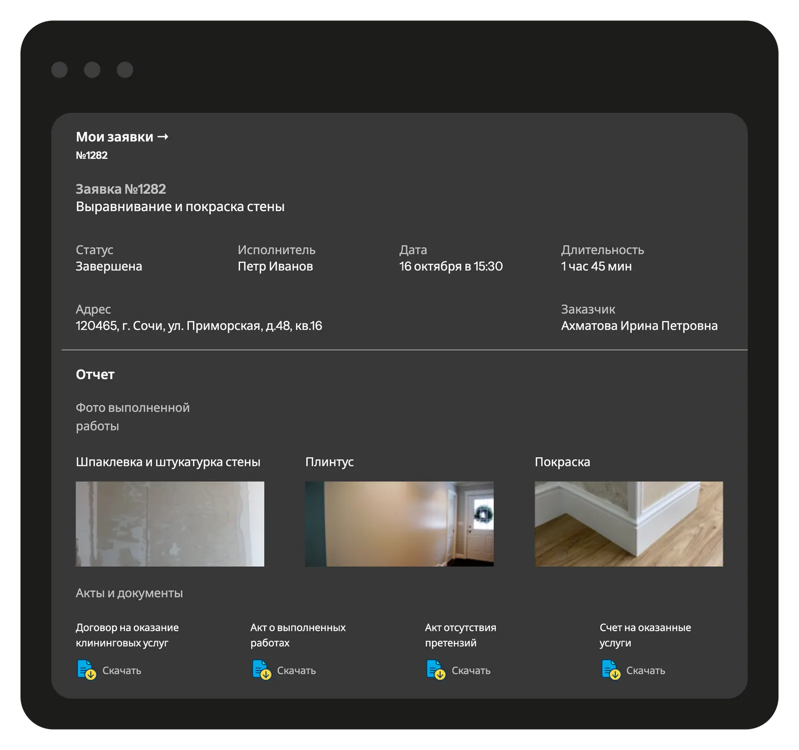 Предоставьте клиенту доступ к брендированной странице с подробной информацией о заявках на обработку, статусах работ и фотоотчётами по выполненным услугам. Через клиентский портал ваши клиенты могут отслеживать статус своих заявок, просматривать завершённые и запланированные обработки, а также оставлять отзывы о качестве сервиса. Вы самостоятельно определяете, какие заявки и детали будут доступны клиенту для просмотра.