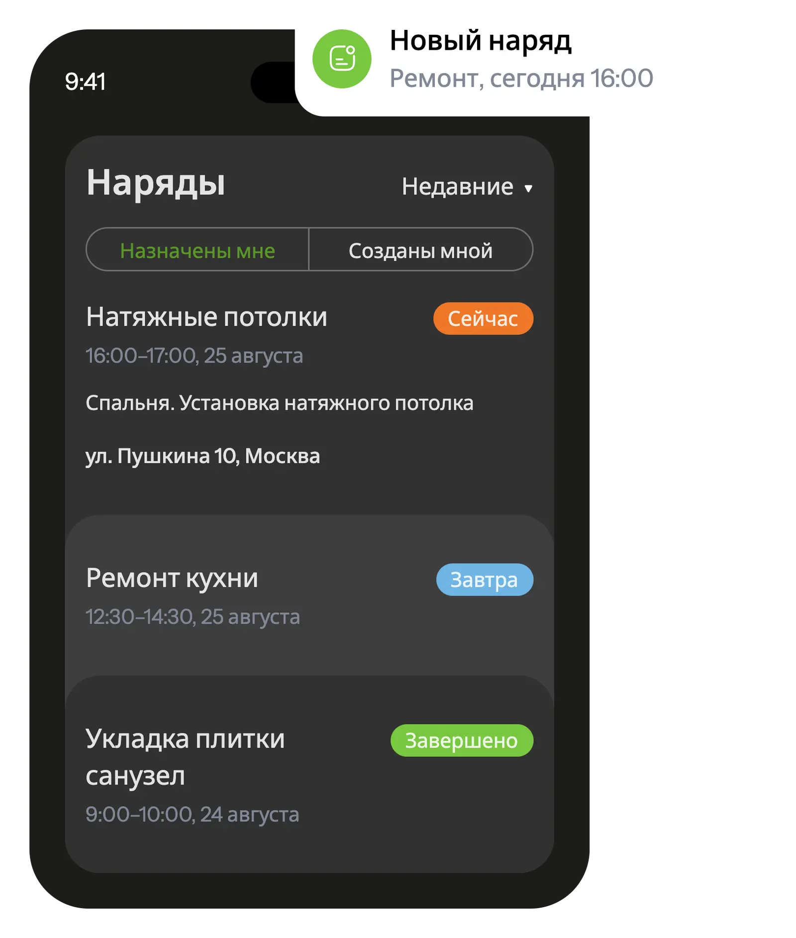 В мобильном приложении ваши сотрудники видят все запланированные задания и получают уведомления о новых поручениях.