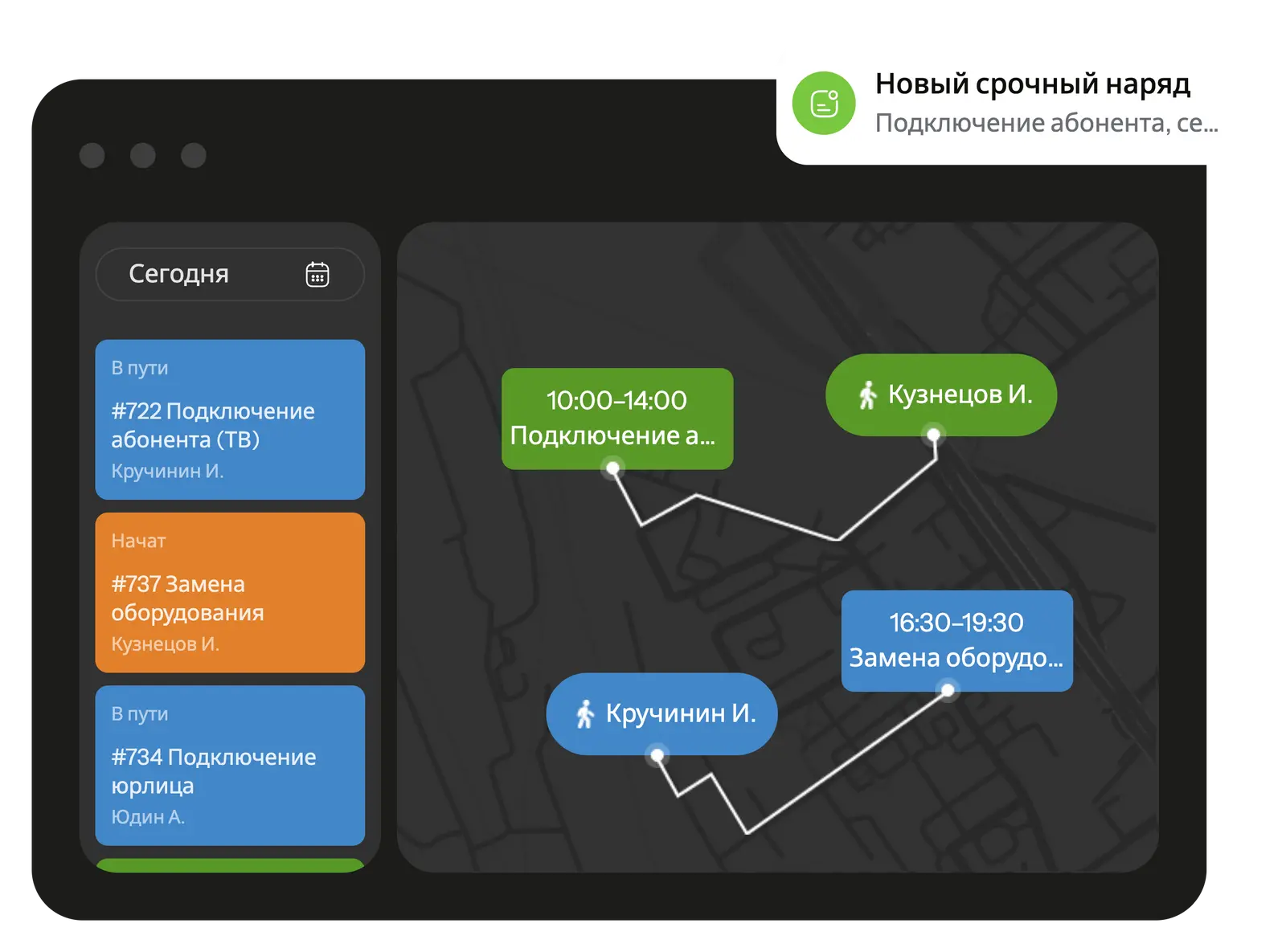 Учитывайте загрузку монтажников, географию заявок и особенности подключаемых объектов.