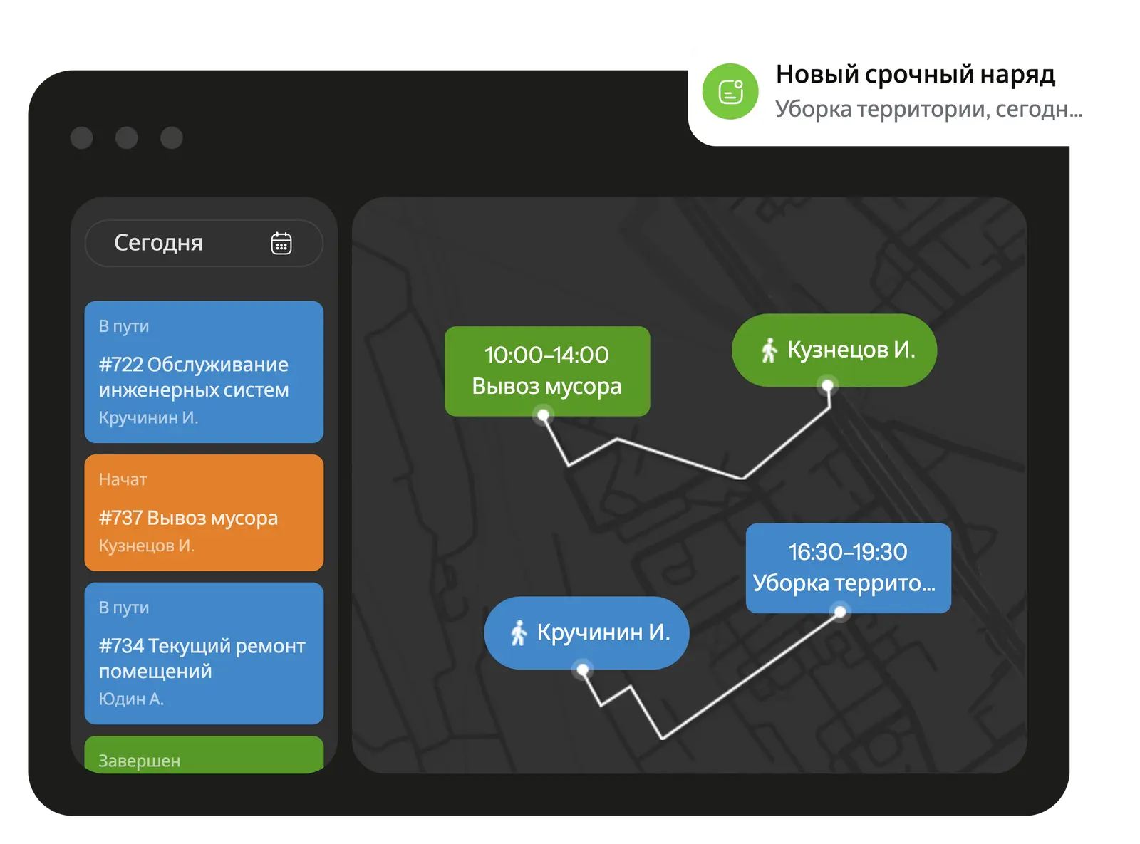 Мобильные сотрудники получают задания через приложение с детальной информацией об объекте и требуемых работах. Планадо помогает оптимизировать маршруты и контролировать перемещения персонала. В итоге это повышает эффективность работ и сокращает время реагирования на заявки.