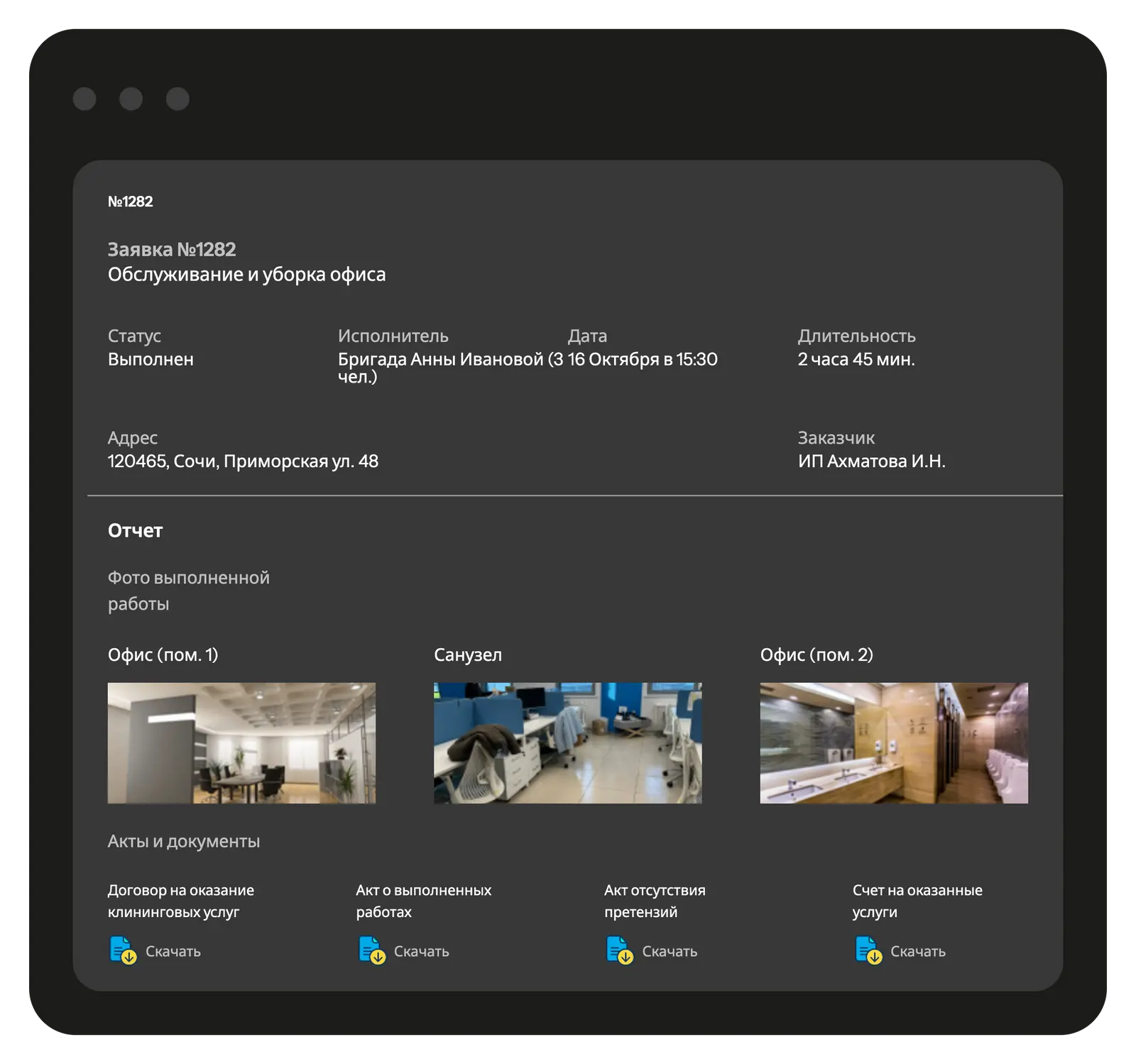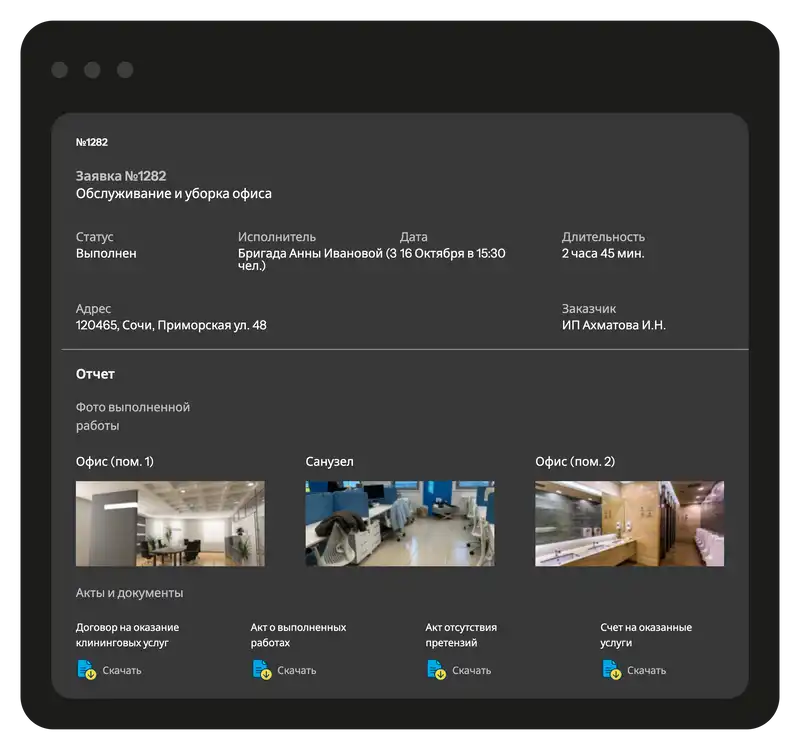 Встроенные отчеты помогают контролировать работу и производительность каждого сотрудника. Системой фиксируются все действия, выполняемые на объекте, что исключает возможность недобросовестного обслуживания. Руководители могут в режиме реального времени отслеживать эксплуатацию всей инфраструктуры и при необходимости вносить коррективы. Это обеспечивает прозрачность процессов и повышает доверие клиентов к качеству предоставляемых услуг.