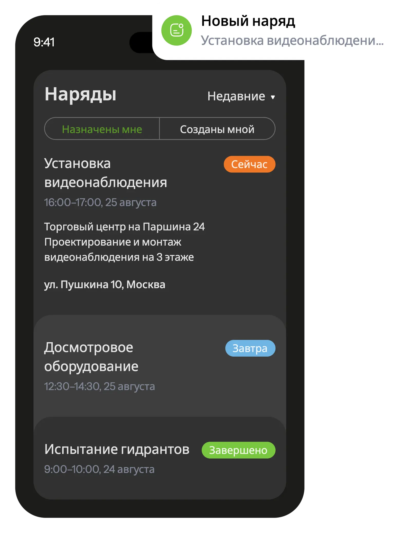 В мобильном приложении специалисты могут просматривать все запланированные работы и получать уведомления о новых задачах.